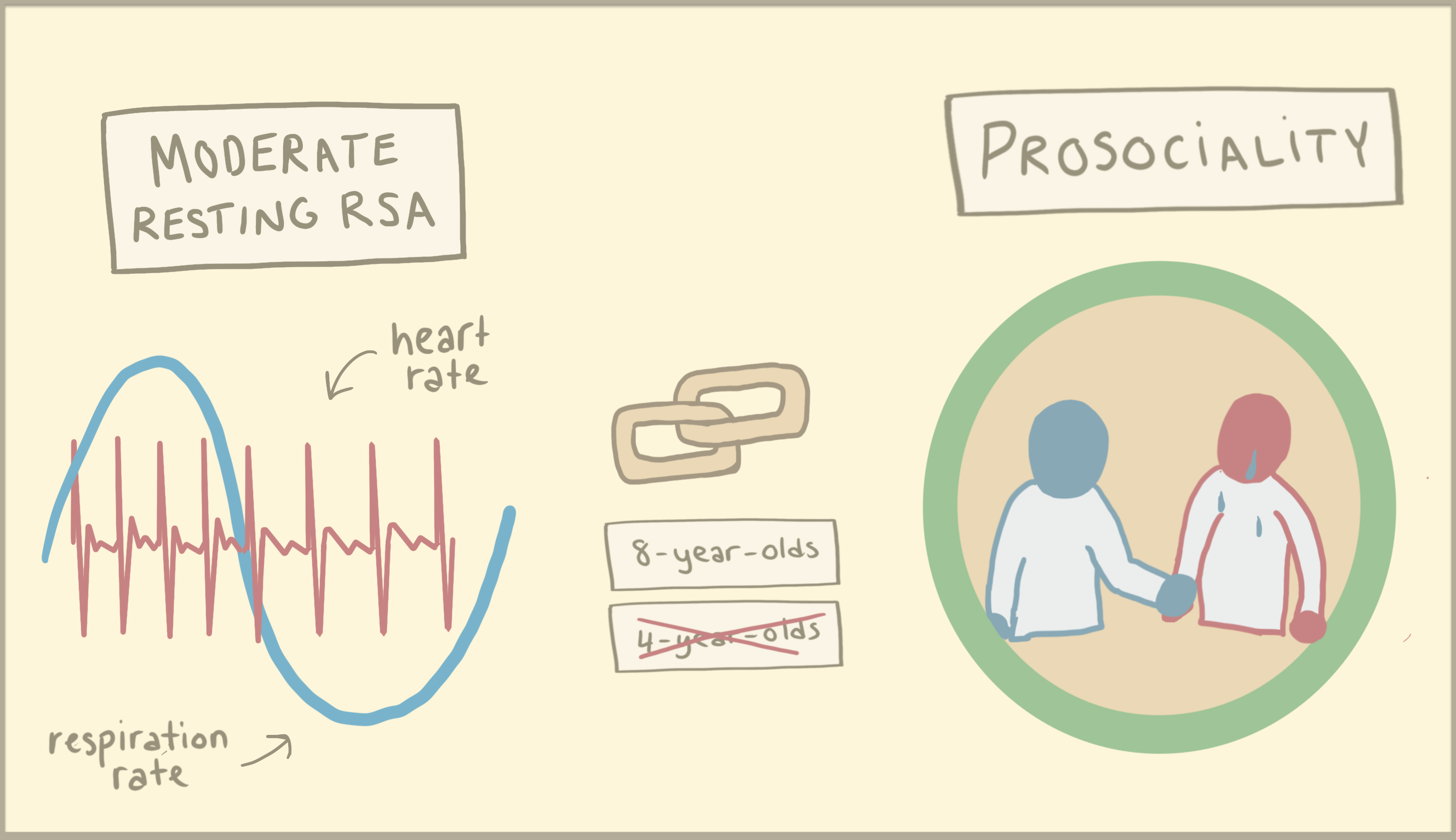 We found a goldilocks relation between children’s ‘rest and digest’ system (i.e., parasympathetic nervous system) and their prosociality (N = 300). Children with moderate levels of parasympathetic system activation had increased sympathy and prosocial behaviours (e.g., sharing). However, this was only the case for children in middle childhood, not early childhood. Parasympathetic system activation was indicated by children resting respiratory sinus arrhythmia (RSA).